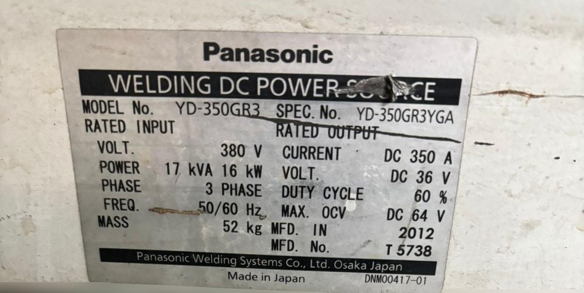 MAG Welder (Panasonic) memiliki nomor model YD-350GR3 dan tahun produksi 2012.